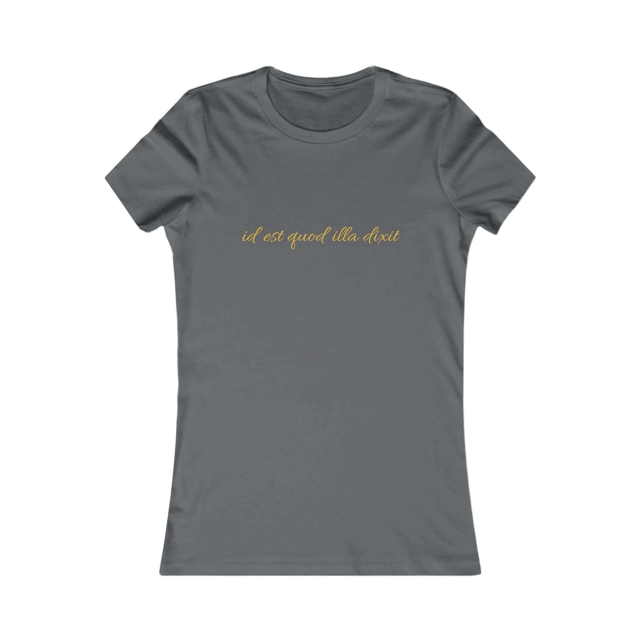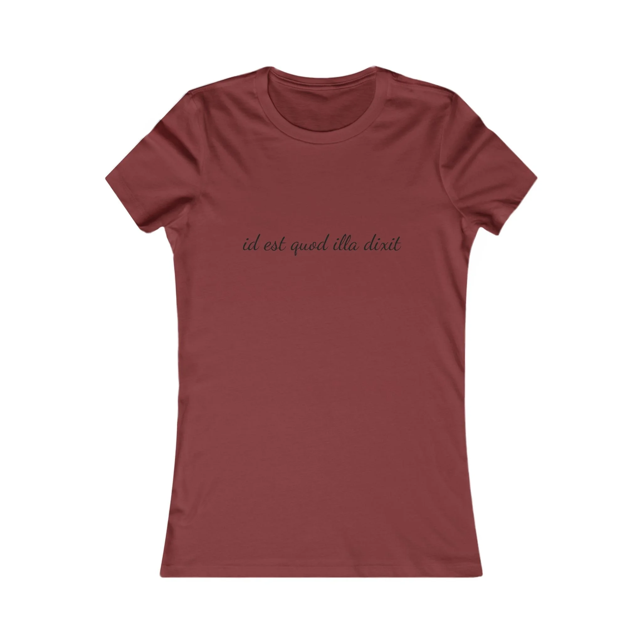 Quick View Women's Favorite Tee from $29.20 Quick View Women's Favorite Tee from $18.70 Quick View Id Est Quod Illa Dixit - Unisex Softstyle T-Shirt from $16.13 Quick View Id Est Quod Illa Dixit Women's Tee from $29.20