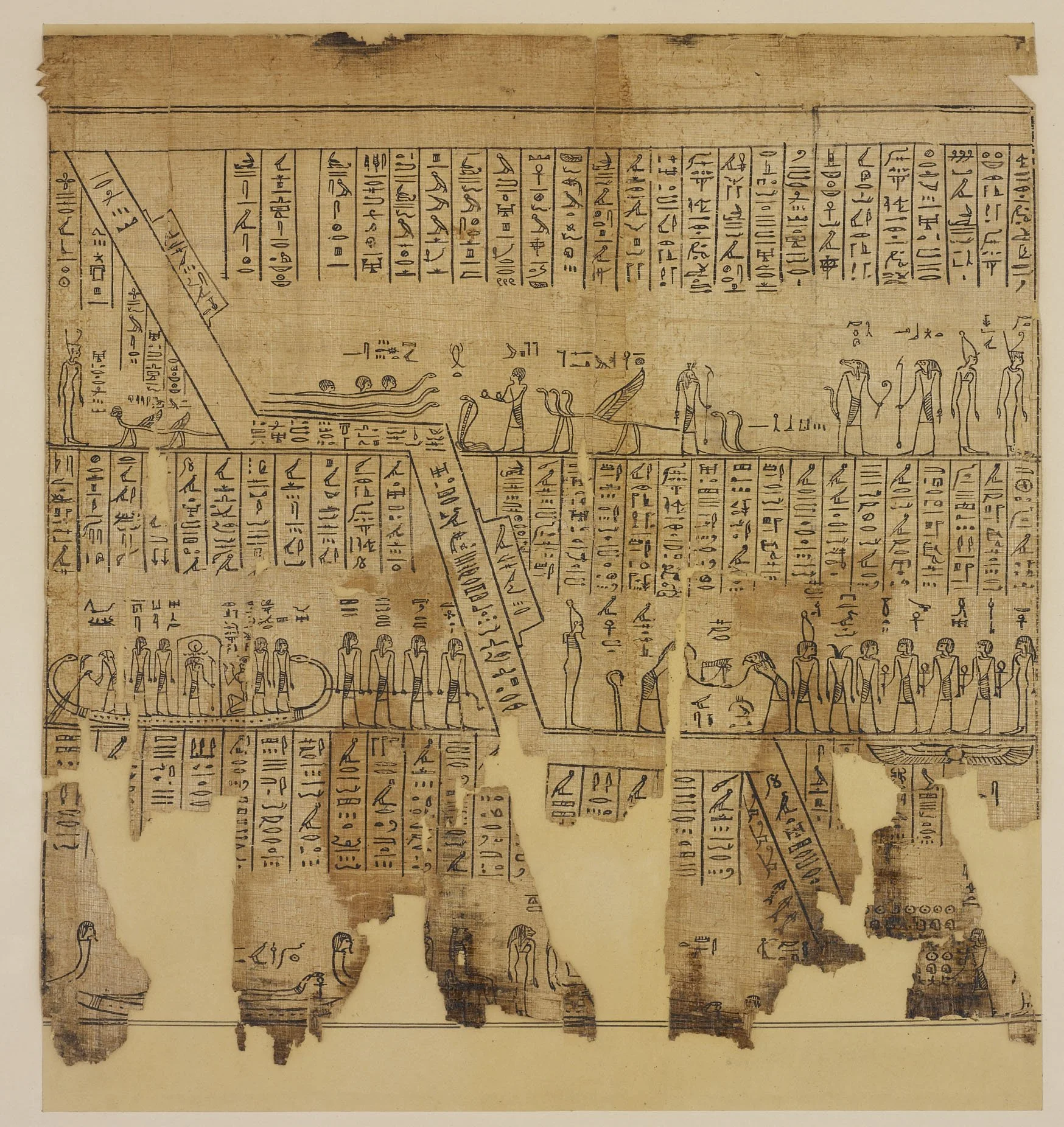 The Amduat, meaning ‘that which is in the netherworld,’ is also known as the Book of the Hidden Chamber. It is a funerary text that describes Re’s journey of renewal. The other main text is the Book of Gates. These two texts differ as they give separate descriptions of Re’s passage through the 12 hours of night during Egypt’s New Kingdom period, serving as guides through the Duat, or the underworld. The Amduat focuses on time, highlighting hours and hidden chambers, while the Book of Gates emphasises space, featuring guarded gates (or pylons) which require specific knowledge to pass. So, think of the Amduat as a journey through time, and of the Gates as a journey through portals in space.